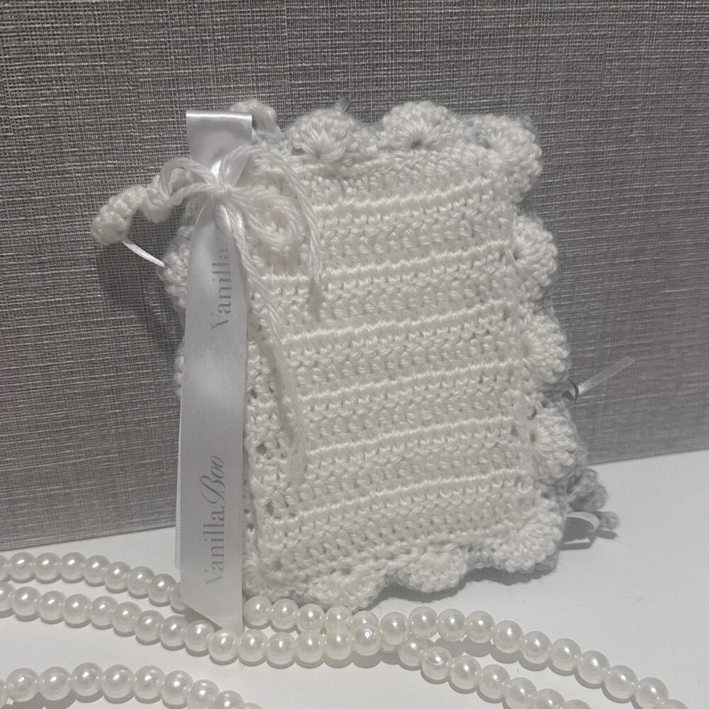 毛糸で作ったふわふわなカードケース。