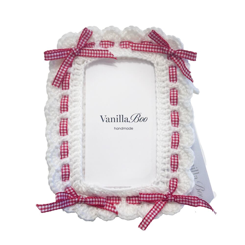 チェック柄のリボンで縁取ったアイテム。